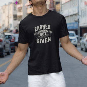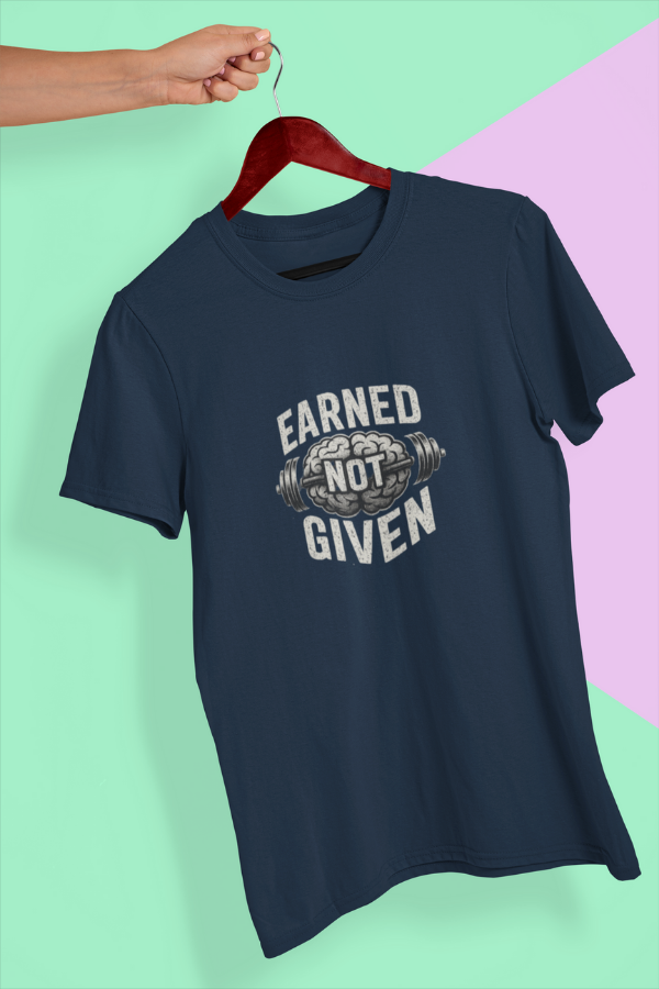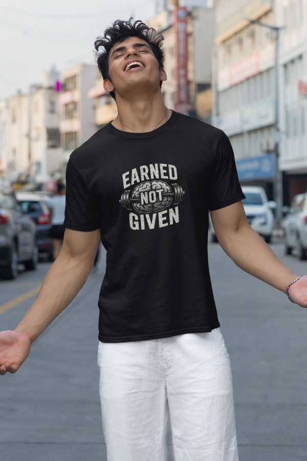 Your hard work, your results: this motivational tee makes a bold statement. Featuring a stylized brain pressing a barbell, with “Earned Not Given” in tough, textured typography, this shirt is perfect for gym warriors and mindset-driven achievers. Crafted from 100% cotton (~180 GSM) for superb comfort and durability. Printed only after you order as part of our eco-friendly POD model—zero overstock, zero waste. Ships free across India.