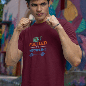 Show your strength through commitment with this motivational tee. Featuring a bold battery icon and durable barbell graphic beneath the slogan “Fuelled by Discipline”, this shirt is both a statement and a symbol. Crafted from soft 100% cotton (~180 GSM), it offers breathable comfort for workouts and everyday wear alike. Printed only upon order—no overstock, no waste. Ships free across India.