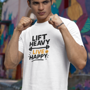 Muscles meet mindfulness in this energizing tee: a bold barbell graphic paired with the empowering slogan “Lift Heavy, Live Happy”, complete with a cheerful smiley accent to balance strength with positivity. Made of 100% cotton (~180 GSM), it promises soft and breathable comfort whether you’re in the gym or on the go. Printed only per order—no overstock, no waste—plus free shipping across India.