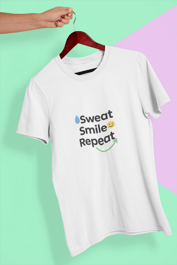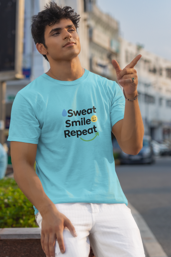 Bring joy to your daily grind with the “Sweat Smile Repeat” tee—a playful nod to balancing effort with positivity. This unisex shirt features a clean, upbeat design with a simple drop icon, a smiley emoji, and a playful arrow in refreshing shades of blue and green. Crafted from 100% cotton (~180 GSM), it offers soft comfort for workouts, walks, or lounging. Made only when ordered—minimizing waste—this tee ships free across India.
